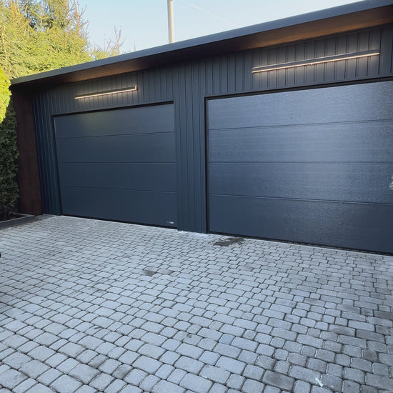- Dwie izolowane bramy segmentowe z napędem i pilotami.